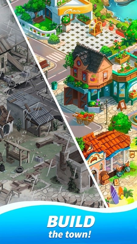 You arrive at a place called a tourist town and begin the process of discovering it. But it doesn’t look touristy because of its backwardness and poverty. To fix this, you are determined to help people reinvent it. The first is what needs to be done to beat the merge challenge that is created. You will combine the things you need until you find the item the game wants. So you can accumulate a large amount of money into your wallet quickly. Then use this money to change each part of the town. From houses and production areas to places to see the scenery. Everything has been calculated by you and needs to be done next.