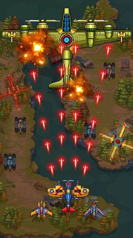 It’s not over when the ultimate goal is to win. And most of all, destroy the entire enemy army. To do this, the player must kill the evil boss at the end of the match. They are huge with immense power. Players need to strategize wisely and use a lot of firepower and time to defeat them. This is the difficult challenge that the game gives you. Especially before the bosses appeared, you had to destroy the light aircraft first. Download 1945 Air Force MOD APK to use powerful firepower to shoot down all enemy fighters.