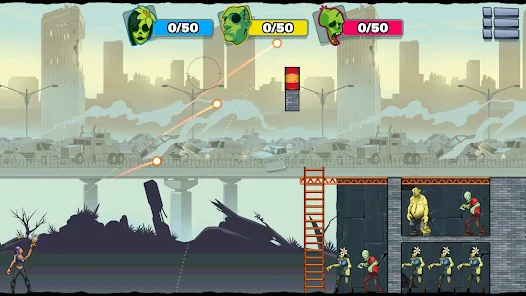 Stupid Zombies 3 requires you to have accurate shots. The game will pre-draw the path of the bullet. Your job is to choose the way to kill the most zombies. The location of zombies will also be different; each place will have a few. You can also take advantage of the terrain and surrounding objects to kill zombies most easily. For example, if you are worried that with too little ammo, the number of zombies required is high, don’t worry. So many exciting tasks are waiting for you to perform. You can choose to challenge and win for resources. The enemy is getting stronger; you must ensure you will meet the game’s requirements.