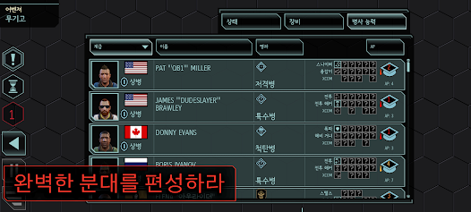 앞으로의 전투에 맞추어 나만의 팀을 편성하십시오. 불리한 상황을 뒤집고 분대를 생존시켜야 합니다.