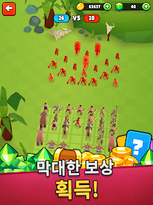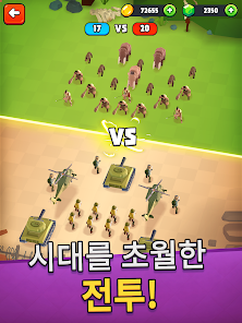 With tons of levels taking place in many different eras. From the past to the present to the future, there is no shortage of space. The beginning is a series of prehistoric battles. In the middle of a cool green forest, there are animal skeletons that have been decomposed. Towering rocks. The heroes of this era wore simple loincloths. Holding wooden sticks, wooden bows or mace in aboriginal style. There are also support animals such as grizzly bears, wolves or mammoths. These animals are obtained after winning battles and opening gift chests. Every time you pass a certain level, the player is provided with new types of soldiers and animals.