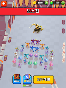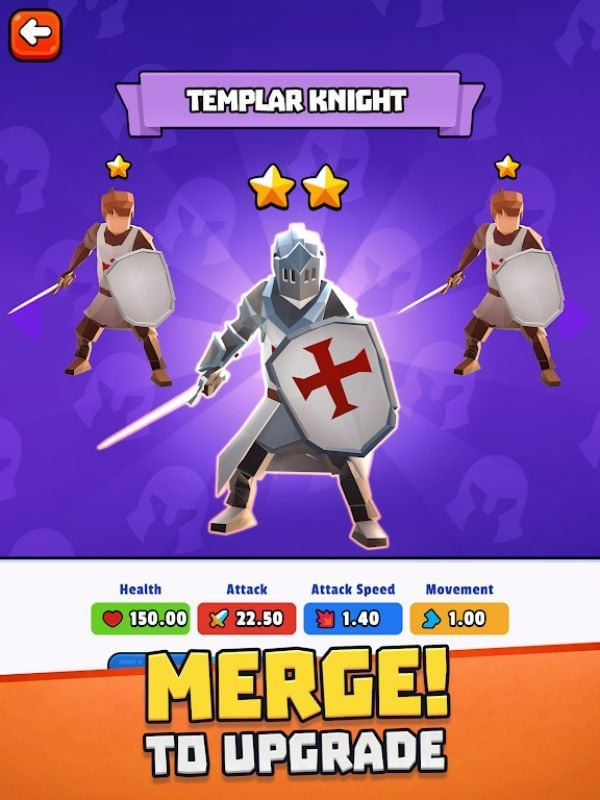 The upgrading of characters and weapons in Battle Simulator: Warfare is unlike any other game. Here, when a hero fights, he will accumulate blue energy particles. When they reach a certain level, the character automatically moves to the next level. So gradually progress to legendary levels. When the level increases in proportion to the damage, health, delay when attacking, … Therefore, players need to divide the group of heroes. Each hero participates in a certain number of battles. So that everyone can level up and become stronger. Levels here are represented by yellow stars.