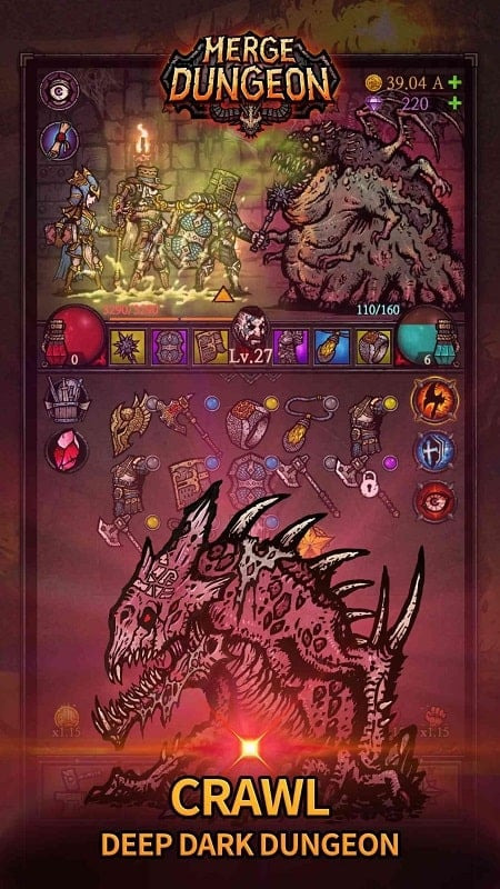 Although there are many complicated elements and mechanisms, Merge Dungeon is a reasonably simple game if you get used to it. With just a few taps, you can play. So this will be a great product during leisure or rest if you are bored and have nothing to do. Without wanting to make a complicated game, Merge Dungeon mod will be the most chosen game. Explore the dark dungeon together to bring back the most precious treasures.