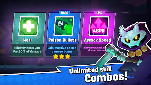 Besides destroying enemies, you can also choose to collect gold coins. They are square and glittering, arranged in the area. In addition, when the player shoots at the enemy, they also drop gold coins. When you win these levels, you can also get skill cards. They can help you amplify the combat power of your weapon to a much more special level. Download Archformer mod role-playing game shooting to destroy alien monsters.